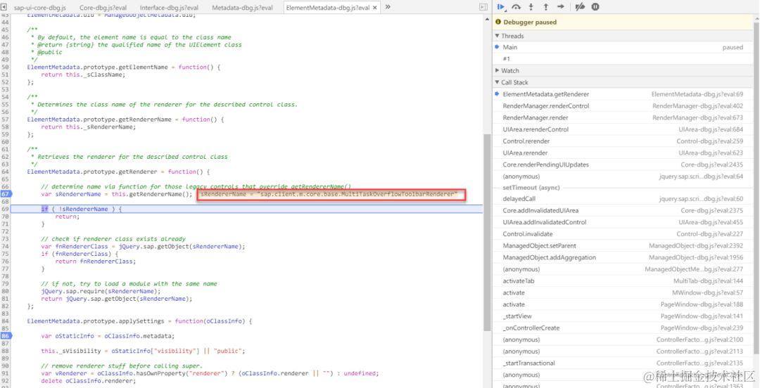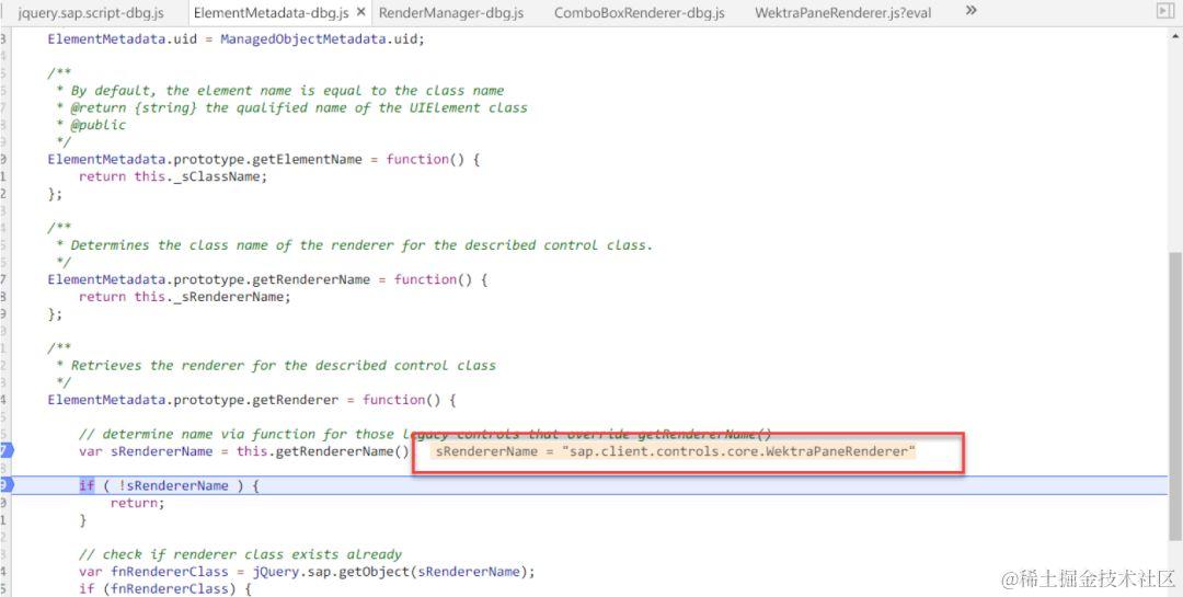 我的同事,SAP成都研究院小李探花周帅,在他的文章浅谈Fiori Design Guidelines里曾经提到,C4C有三套UI,Silverlight,HTML5和RUI。其中HTML5和RUI都基于SAP UI5。那么什么时候去渲染HTML5的控件,什么时候又去渲染RUI的控件呢?实际上每一个UI控件都有其对应的renderer,那具体是哪一个render来负责生成HTML5源代码,就是由下面getRendererName里面的逻辑来取出对应的renderer。