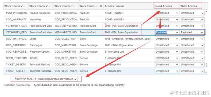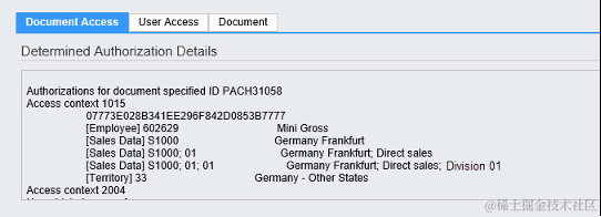 例如这里,有两个访问控制字段,一个是Employee(1010),另一个是SalesOrganisation(9001),当出现多个访问控制字段时,系统只会以最后出现的访问控制字段为主.