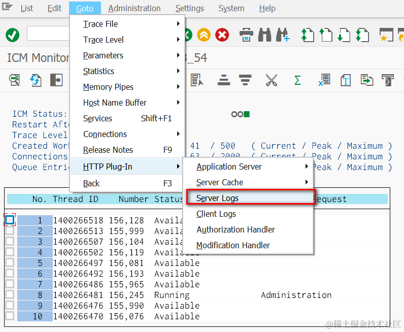 事务码SMICM,Goto->HTTP Plug-In->Server Logs: