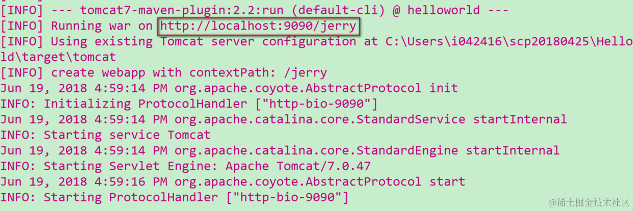然后在命令行里执行命令:mvn tomcat7:run
