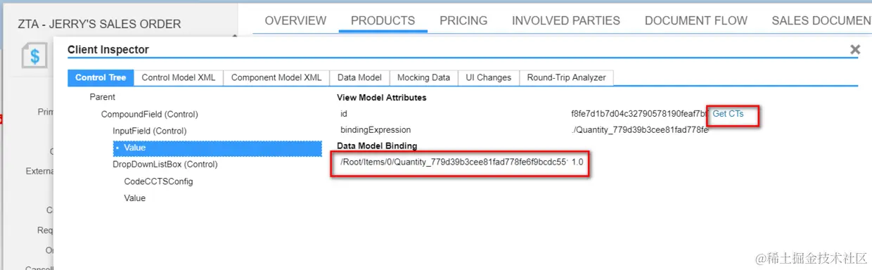 比如我们想看Quantity这个字段到底是绑在哪个模型上,选中该字段按F2: