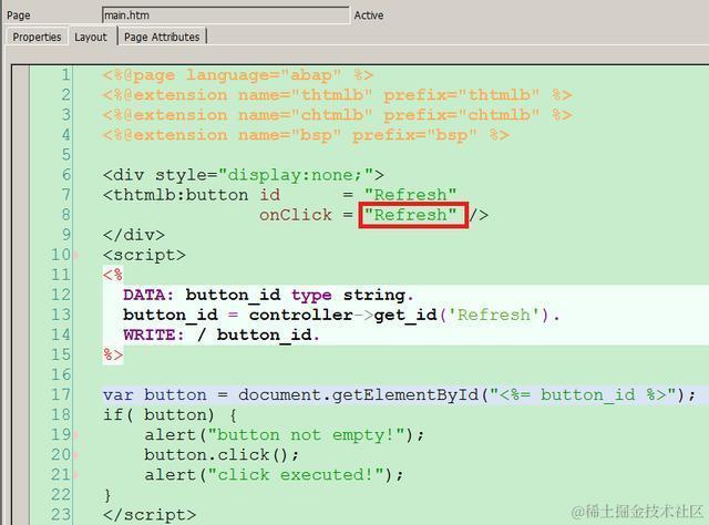 1. 定义一个hidden button, 其onClick事件处理函数(event handler)设置成SAP ABAP后台的event Refresh:
