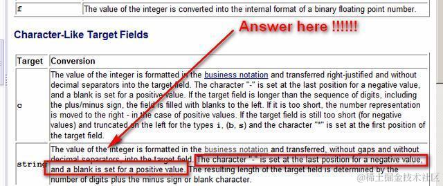 帮助文档说的很清楚了:如果赋值操作的目的字段(Target字段),即赋值号的左边操作数的类型为string,如果赋值之前的整数是负数,则在赋值后的字符串变量尾部增添一个”-“负号,否则增添一个空白符(blank)。