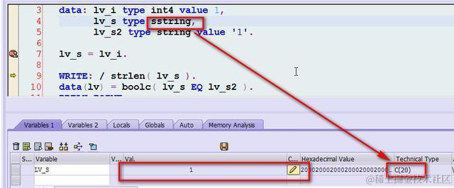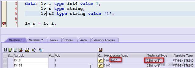 有同事问这个问题:lv_s是从int4转过来的,长度为2,和硬编码的lv_s2(长度为1)相比,后面多了个空格。