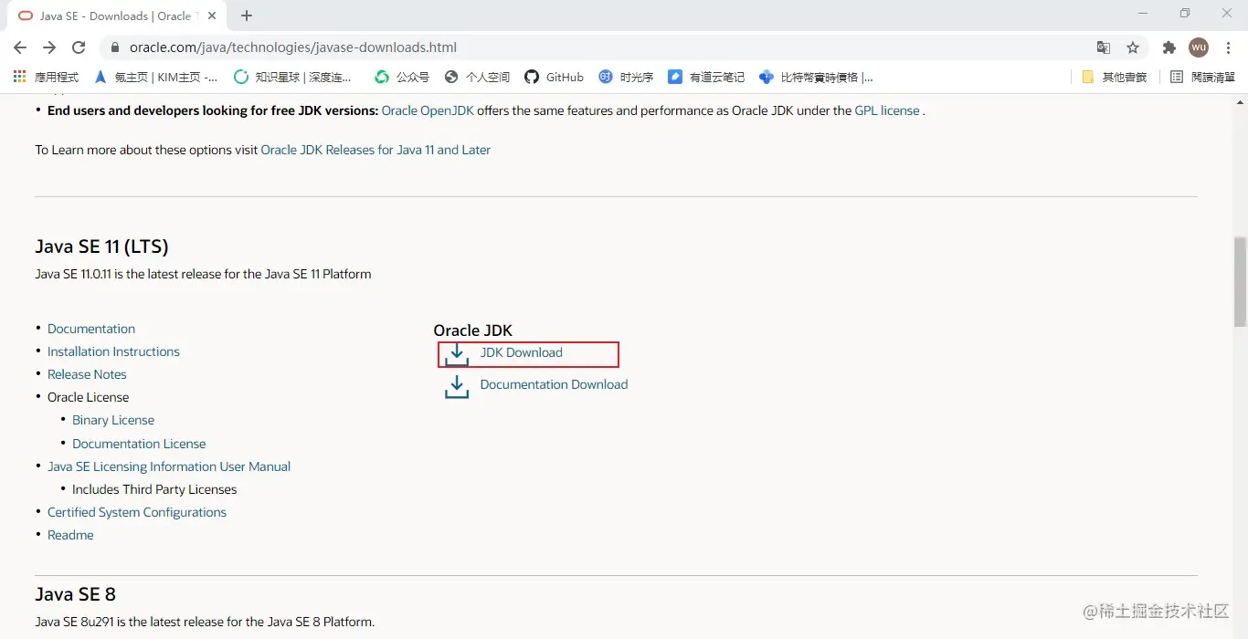 选择自己想下载的JDK版本进行下载,这里我选择JDK11进行演示。
