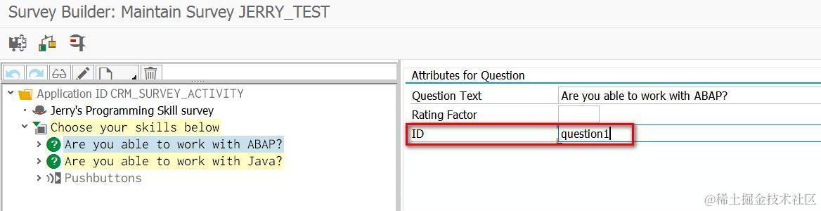 以第一个问题Are you able to work with ABAP?为例,使用菜单Goto->Switch Between HTML <-> XML Display显示该Survey的XML源代码: