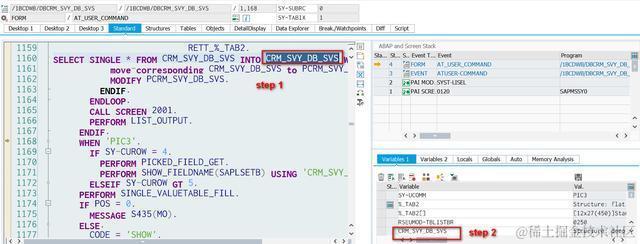 稍稍调试几步,能看到一个SELECT SINGLE语句,这个操作为了取待显示在明细页面上的单条记录。双击SQL取回的结果。