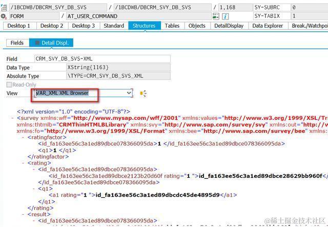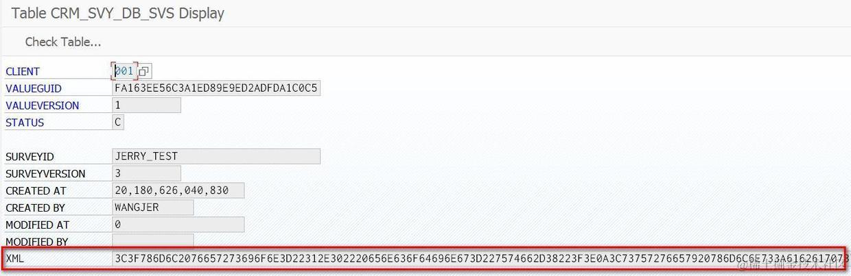 包含的是XML的二进制内容,无法直接在SE16里显示。