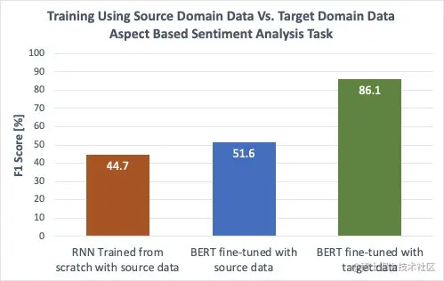 - 橙色条表示使用源域数据(笔记本电脑评论)从头训练RNN,并使用目标域数据(餐厅评论)进行推理;
