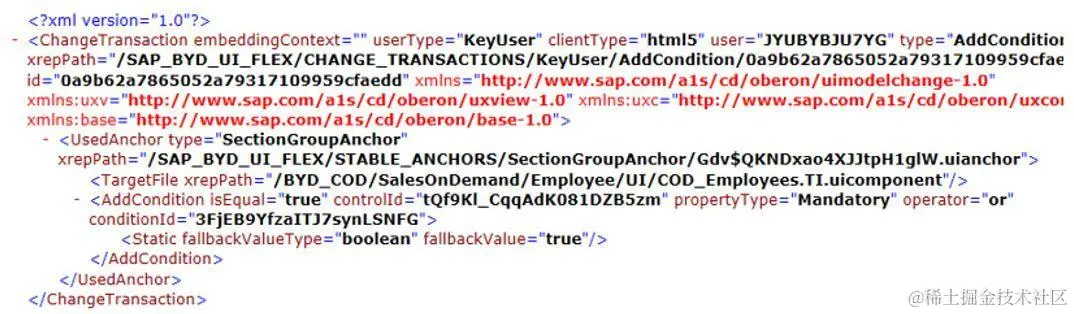 - UsedAnchor:这个属性是C4C Extensibility设计区分于SAP CRM和S/4HANA的最重要标志之一,马上详细介绍。上图的UsedAnchor类型为SectionGroupAnchor,xrepPath为该Anchor在XREP中的路径。
