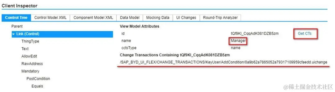 然后重新加载该页面,按住Ctrl + 鼠标左键点击“Manager”字段,出现一个弹出窗口。下图红色下划线标注的就是这个CT在XREP中的存储路径。路径里有个片段”AddCondition”, 提示了这个CT的类型。点击超链接”Get CTs”查看CT明细。