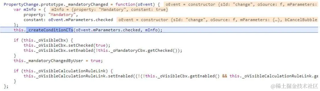 PropertyChange.js会根据传入的事件参数进行解析,判断出当前发生更改的字段的Property是mandatory,于是进入_mandatoryChanged进行处理,创建CT记录这个修改。