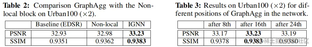 下面两个表分别对比了(1)GraphAgg与其他非局部方法的性能;(2) GraphAgg插入不同位置的性能对比。