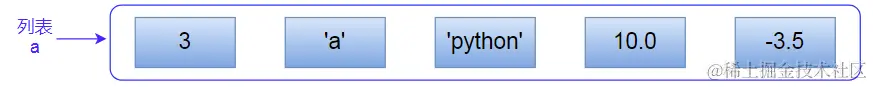 如下,列表a包含三种类型:整形,字符串,浮点型:
