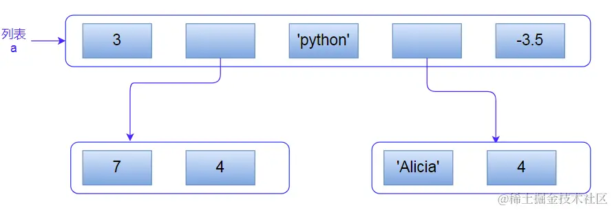 如下列表a嵌套两个列表: