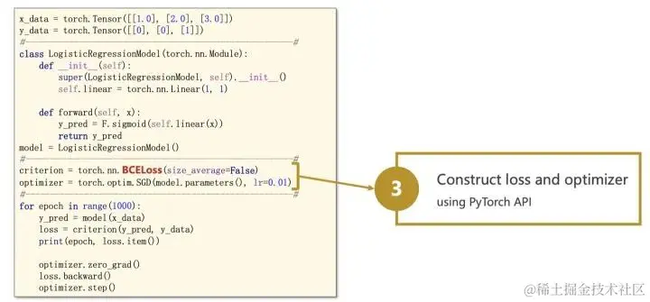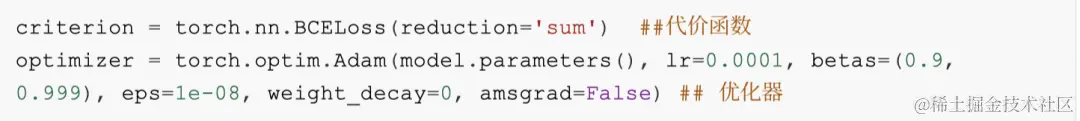 3、定义代价函数和优化器模块 (注意,前向过程只会得到模型预测的结果,并不会自动求导和更新,是由这个模块进行处理)