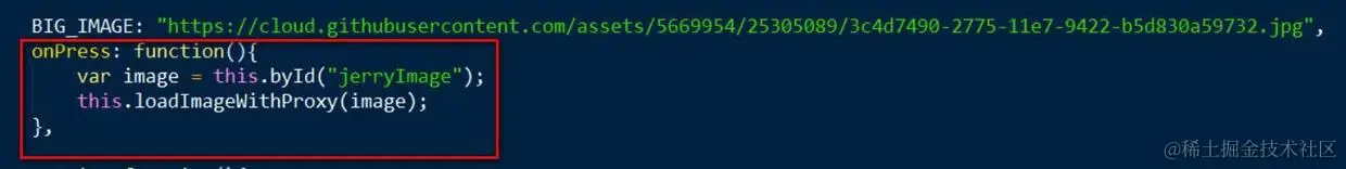 2. 再看控制器的代码:onPress执行loadImageWithProxy。