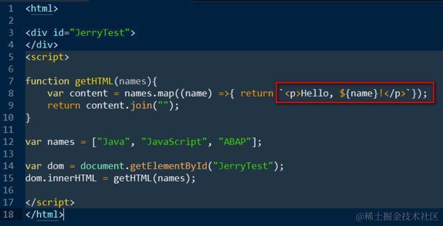 names是个数组,传入一个箭头函数,针对每个数组原则,构造一个字符串,代表一个p标签页,标签页的内容就为数组元素本身。
