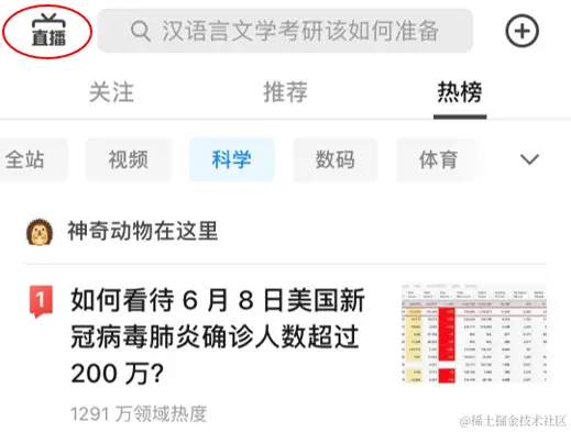 之后,点击知乎APP页面左上角直播按钮进入直播页面。