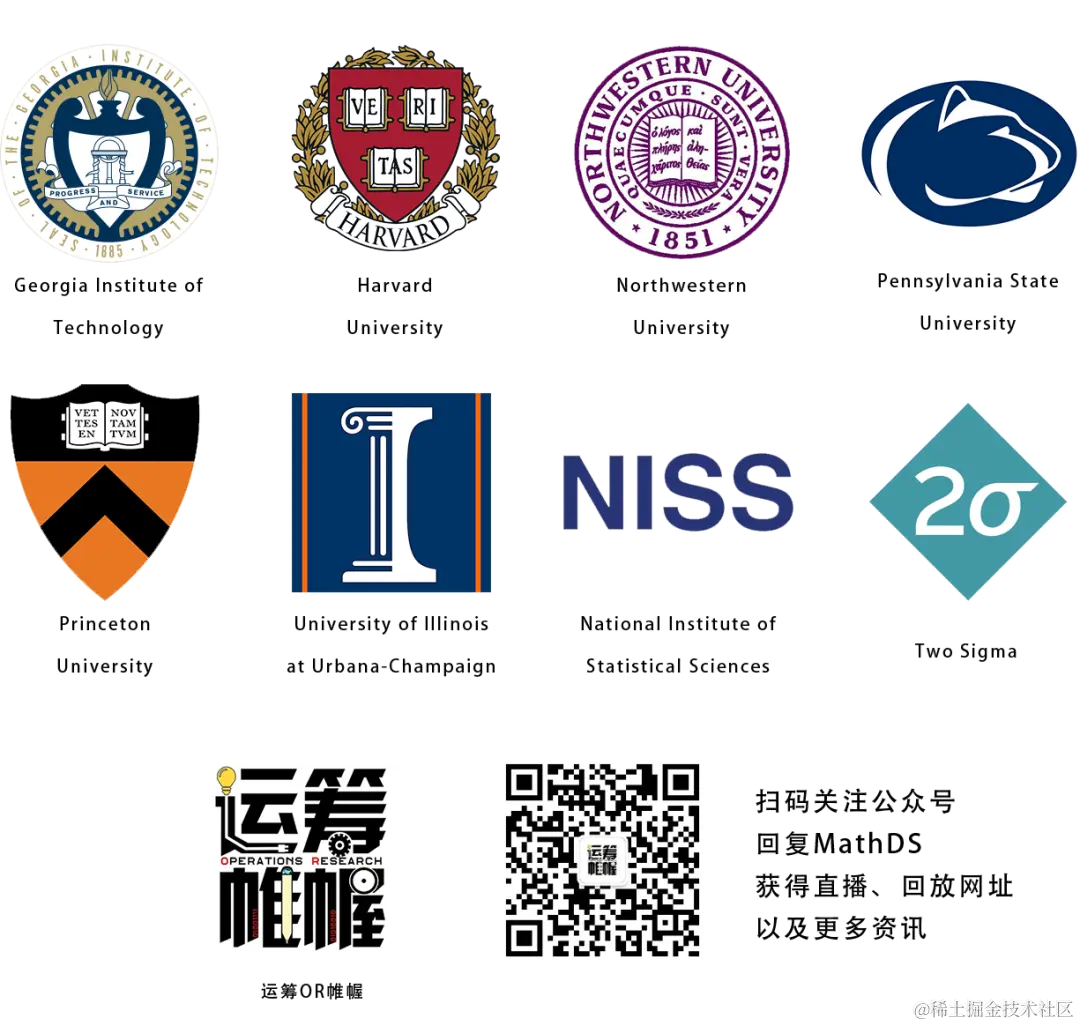 受北美教授的时间限制,Math4DS每期研讨会时间大多设置在美东时间周二的下午三点,即北京时间周三的凌晨三点。这对于国内的观众非常不友好,但是『运筹OR帷幄』也在B站提供了每期的录播,错过直播的小伙伴和想要回顾的小伙伴可以在前往B站观看,小编也会在第一时间上传最新的研讨会视频。