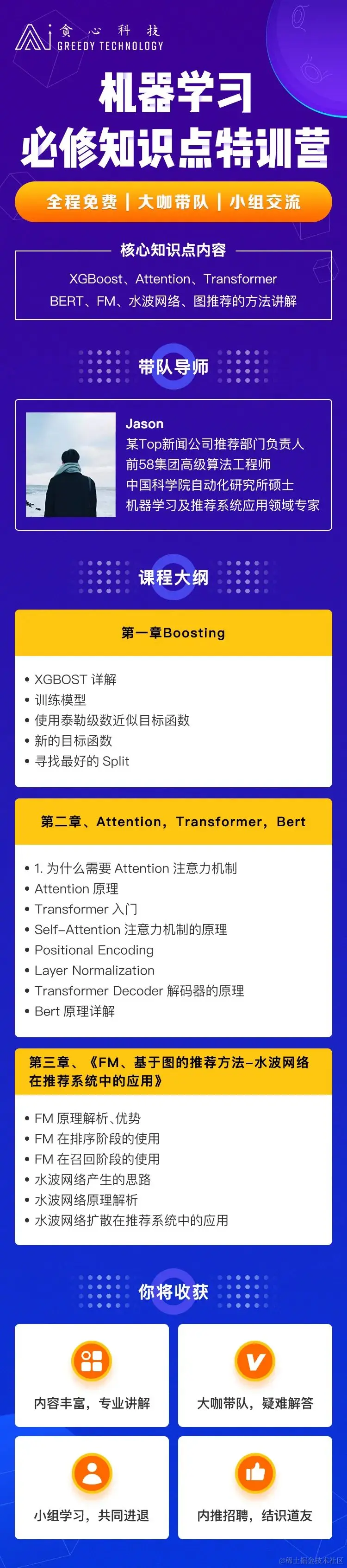 为了帮助大家能够对其有个更深入的理解这些内容,贪心学院特此组织了这次的学习小组计划,深入浅出讲解每个算法模型的每一个技术细节。对于想了解算法底层的朋友们来说,参加这次活动绝对有很大收获! 感兴趣的朋友们可以扫一下下方二维码报名参加,不见不散!