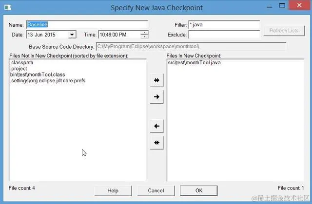3. 指定您的Java项目文件夹内,您希望SourceMonitor计算哪些Java文件的环复杂度。