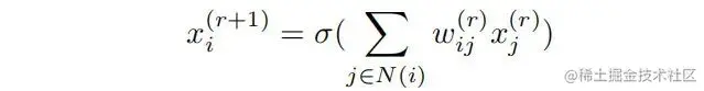 首先从图的结果对神经网络进行回顾,定义图 ,其中 表示图的节点, 表示节点之间的边,同时每个节点具有一个节点特征 。当神经元之间存在信息交互时,我们称上述图定义为相关图。信息交互通过信息函数(输入为节点特征,输出为信息)与汇聚函数(输入为信息集合,输出为节点特征)进行定义。在每一轮信息交互过程中,每个节点向其近邻节点发送信息,并对收到的信息进行汇聚。每个信息通过信息函数 进行变换并在每个节点通过汇聚函数 进行集成。假设进行了R轮信息交互,那么第r次的信息交互可以描述为: