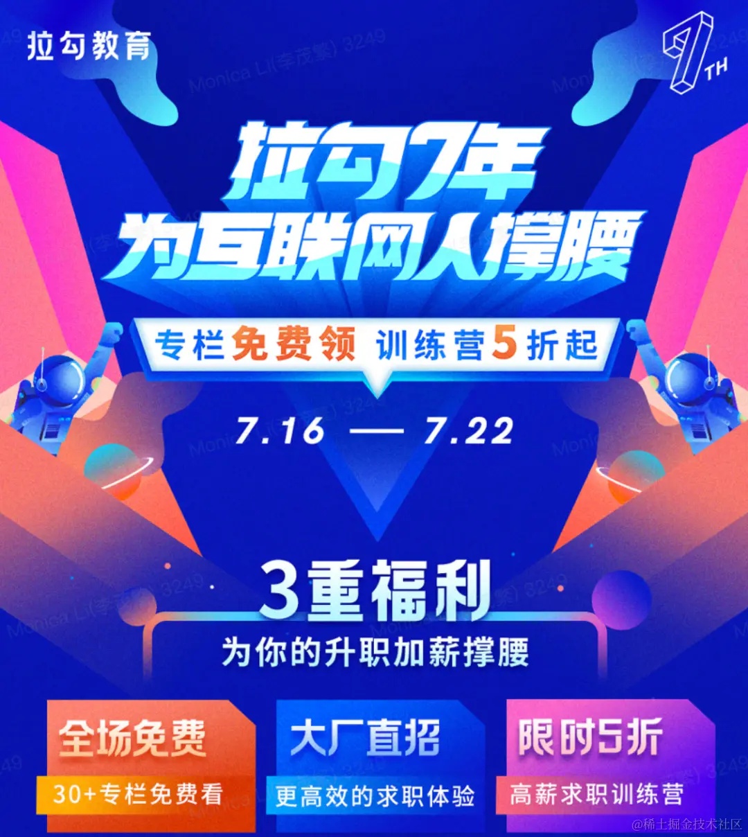 拉勾 7 周年活动,优惠力度空前,点击「阅读原文」,别错过免费又高效学习的机会!