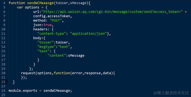 最后,我们用nodejs实现通过API给指定用户发送文本信息。