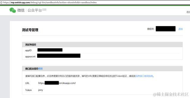 您微信公众号的appid和secret可以在微信开发者中心的控制台里找到,在“测试号管理”页面的标签页下。