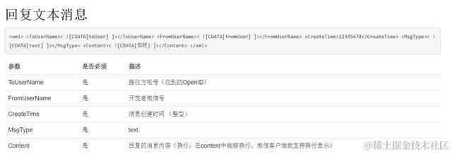 回复消息报文的格式在开发者文档里也有清晰的定义,是一个xml格式的字符串。我的第二篇教程里也有具体的发送该报文的代码示例。