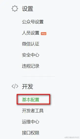 我们登陆微信公众号的控制台后,点开发-> 基本配置: