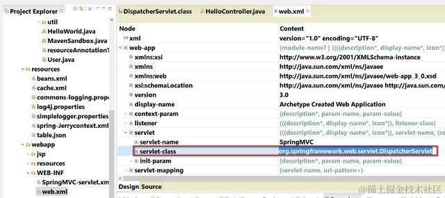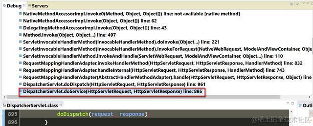 在Eclipse调试器里发现,它是Spring框架的标准Servlet: