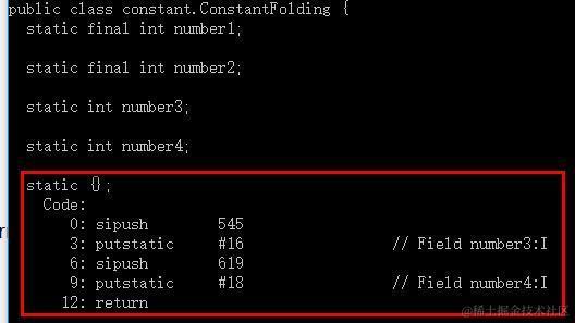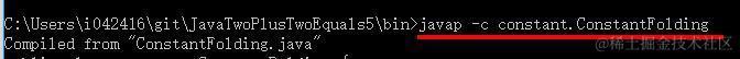 使用命令行javap -c constant.ConstantFolding查看.class文件反编译出来的字节码: