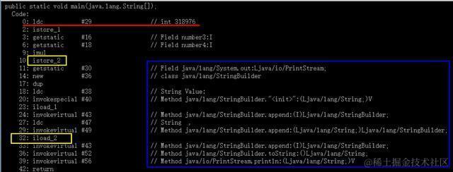至此,这两行字节码指令联合起来,实际对应了我们写的Java代码: