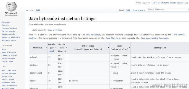 下面这个wiki包含了java字节码里每个指令的具体说明:
