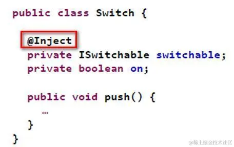 先想想这个简单的例子用Java Spring如何实现。一个Java程序员很容易就能写出下面的代码,利用Spring的注解@Inject,我们无需手动实例化ISwitchable和调用set方法建立依赖。一切由Spring框架帮我们实现了。