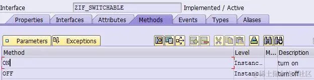 设计一个ABAP interface ZIF_SWITCHABLE,提供两个方法,分别对应开和关。