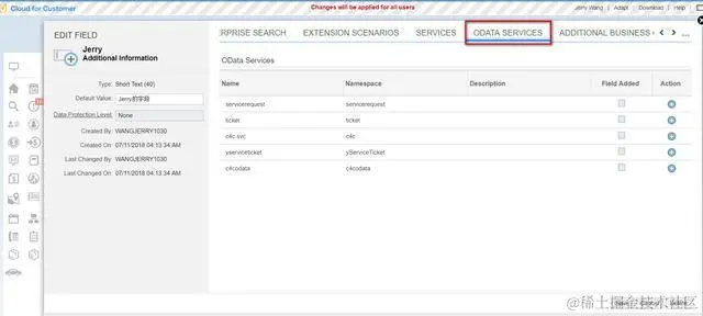 扩展字段也能自动加到SAP标准的Web Service和OData service上: