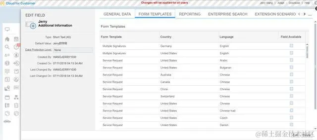 同SAP CRM相比,C4C的扩展字段除了UI之外,还能放到其他模型上,比如放到Adobe Form template上: