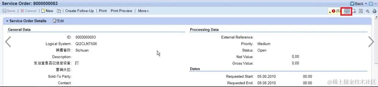 比如我想在下面这个界面上添加一个新的字段。非常简单,点这个齿轮进入Configuration mode - 配置模式: