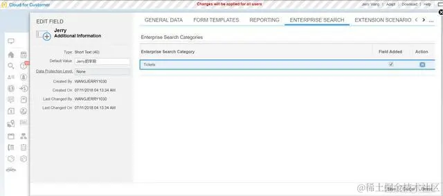 我们使用所谓的Application Enhancement Tool(AET)来创建扩展字段。首先在Personalize里将Configuration模式打开,这样才能够直接在浏览器里创建扩展字段。