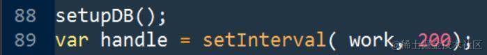 程序的入口是setupDB这个函数,下面的setInterval起了1个间隔为200毫秒的周期执行函数,为了模拟当前浏览器除了进行Web SQL数据库外,还有其他的任务再执行。
