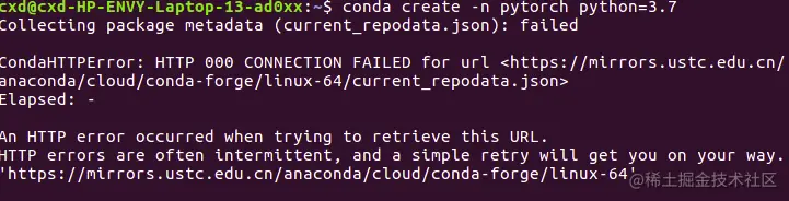 然后输入source .condarc,再次创建虚拟环境: