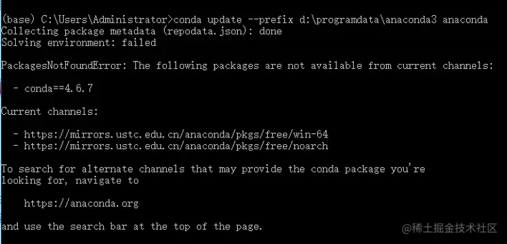 - **PackagesNotFoundError: The following packages are not available from current channels