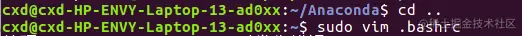 输入source .bashrc来执行刚修改的初始化文档