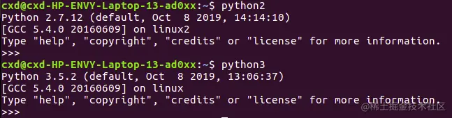 试试刚刚设置的使用内置python的命令:python2、python3