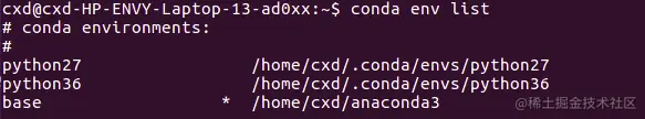 下面输入conda env list来试试环境变量是否设置成功: