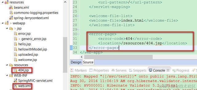 意思是一旦有404错误发生时,显示resouces文件夹下的404.jsp页面。