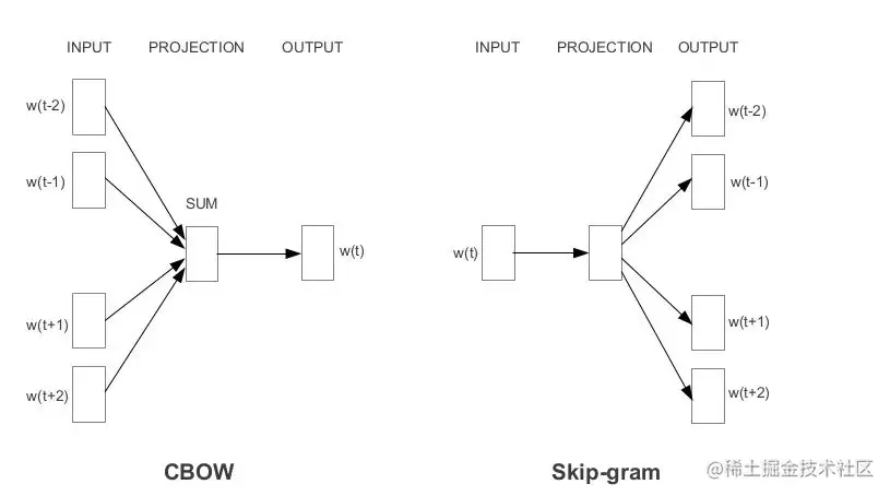 根据嵌入的学习方式,Word2Vec分为两种方法: